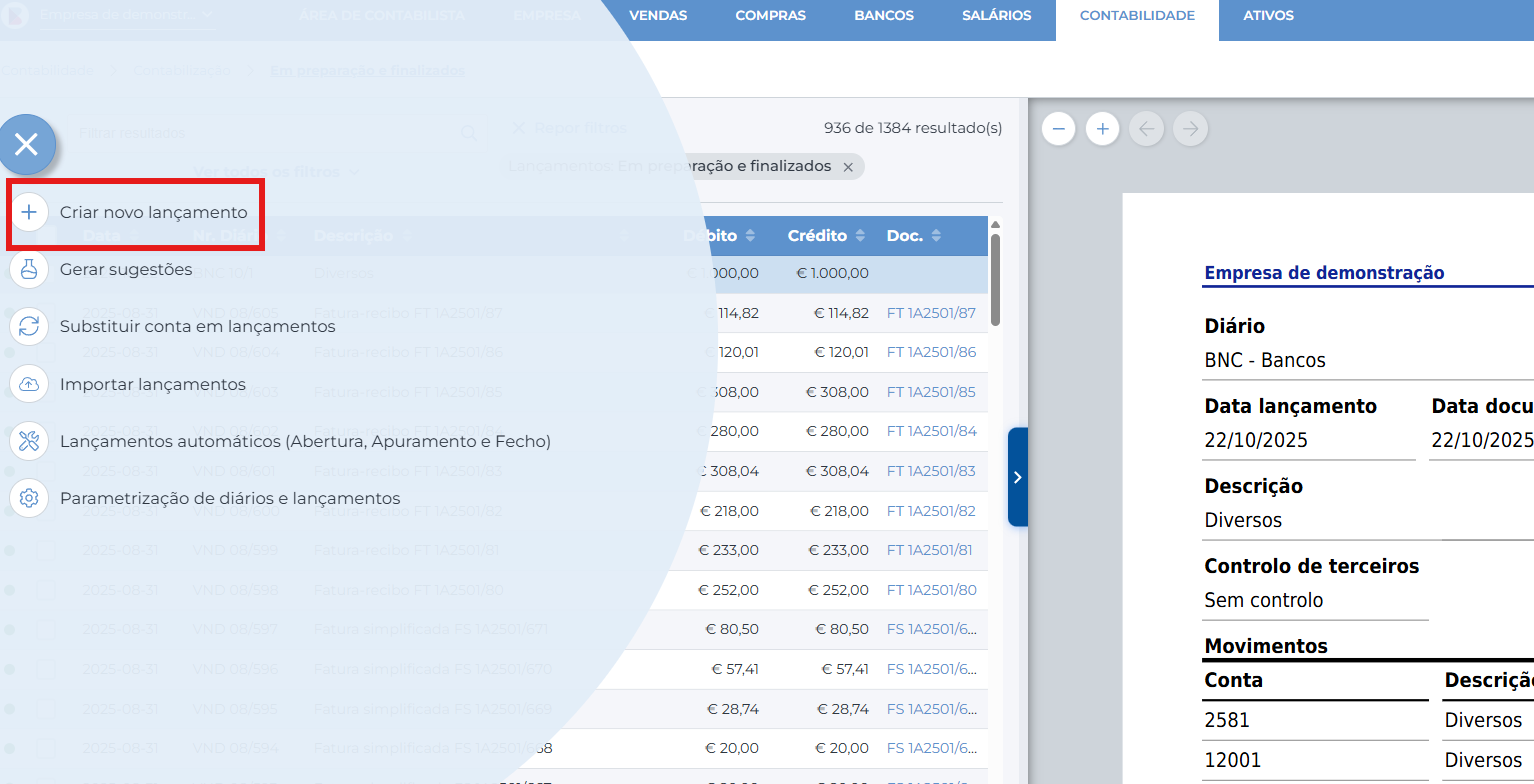 | Private answer No menu de contabilização extistem essas duas funcionalidades. Imagem 1 - Criar novo lançamento. Imagem 2 - Duplicar lançamento.